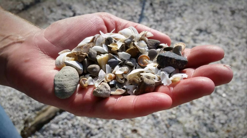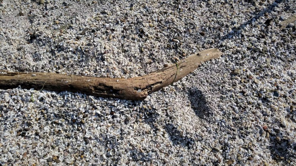 The beach was peaceful with a consistant, cool breeze. The sand was soft at first. As the tide came in it brought millions of tiny shells and other treasures. It was quite pokey to walk on. We found some “lucky stones”. They look like small, white pebbles with markings resembling either “L” or “J”. They are actually the ear bone of a freshwater drum fish or more commonly known as a sheephead. Fisherman will keep one in their pocket for good luck and others have adopted it into their own collections. I love beach treasures!