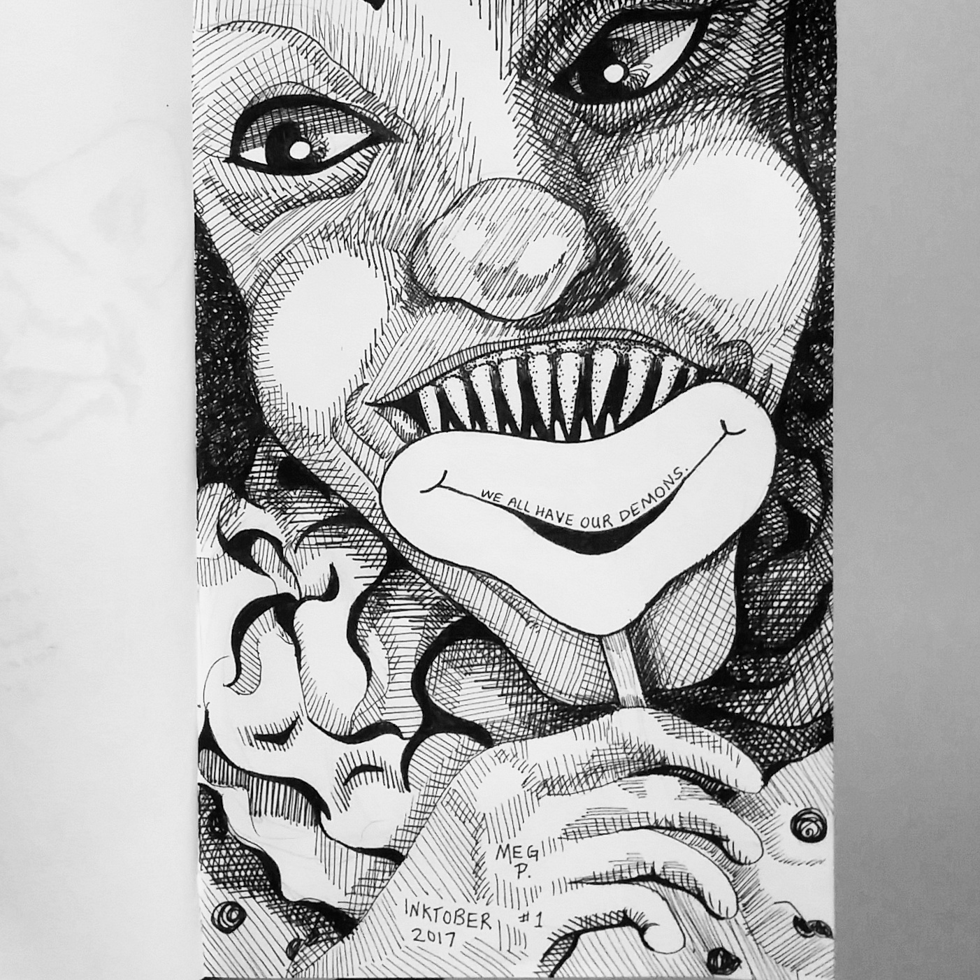 I’m excited to finally begin this year’s “Inktober” challenge of drawing a sketch-a-day in ink. For my first sketch, I decided to do a clown inspired by “IT”.