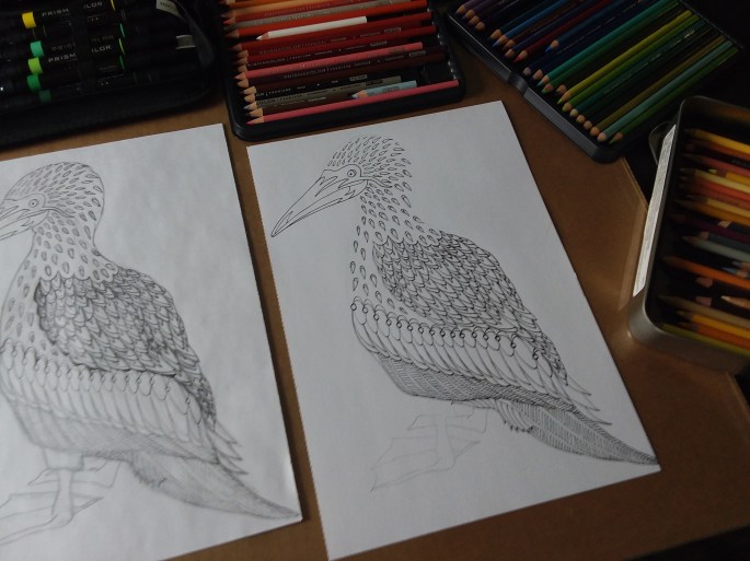 I’ve been trying to get as much drawing as I can done, in between all these snow storms. I do snow removal overnight when it storms so it can be quite exhausting. Sometimes I just need a day to sleep! I was almost able to complete my latest totem drawing today, the blue footed booby. It’s coming out quite nicely and I’m excited to finish it. I worked on it today while I watched movies. I watched 1922 and began watching Dances with Wolves. Both are great movies.