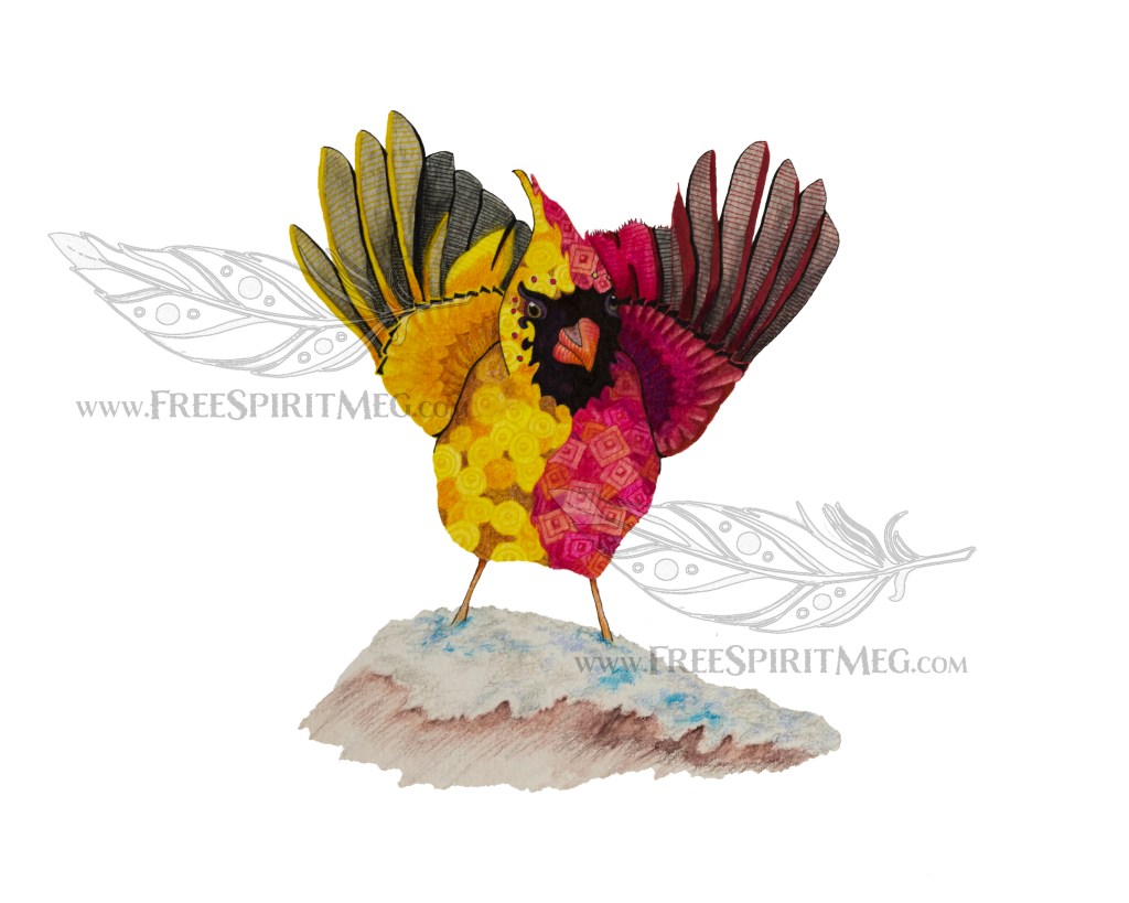 I’m very happy with how the cardinal turned out. I never intended to create as many bird drawings as I have, it just kind of happened. I just love feathers and their patterns and colors! I am naturally drawn to birds so therefore they are naturally drawn by me! See what I did there! 😉 I used Arteza water color pencils and Prismacolor art markers along with a micron pen to get the thin black lines. I can only hope that maybe one day I will see one of these beauty’s with my own two eyes!