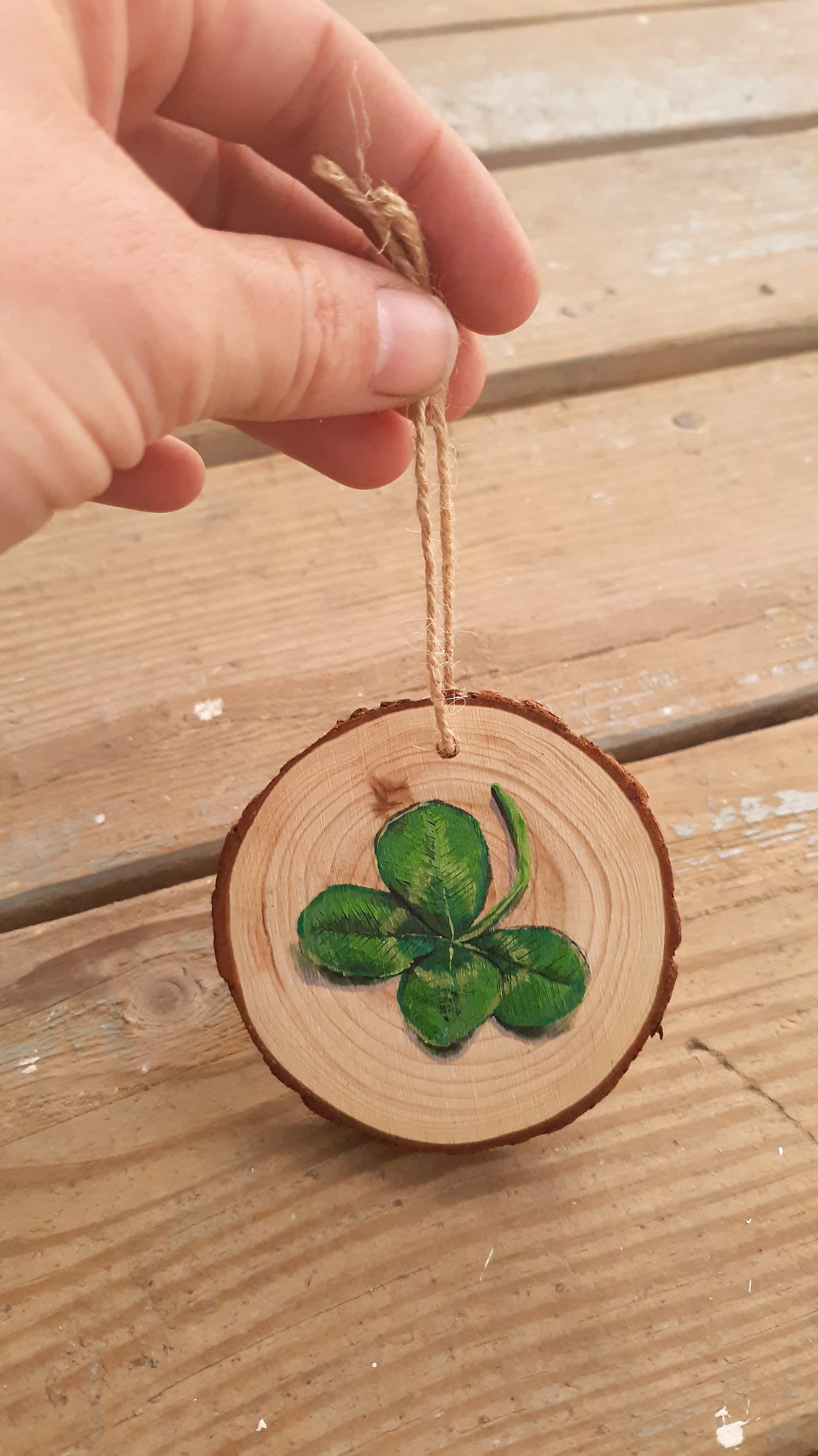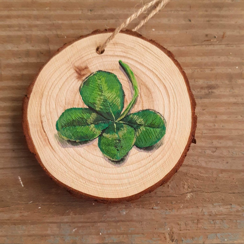 I hope everyone had a great and safe holiday! I decided it would be a good day to paint a four leaf clover on my new wood slices I recently got! I’ve been wanting to try my hand at some 3-D painting so I used this for some practice. It’s not the traditional shamrock that accompanies the holiday but four leaf clovers carry luck and who doesn’t want a bit of that right now!