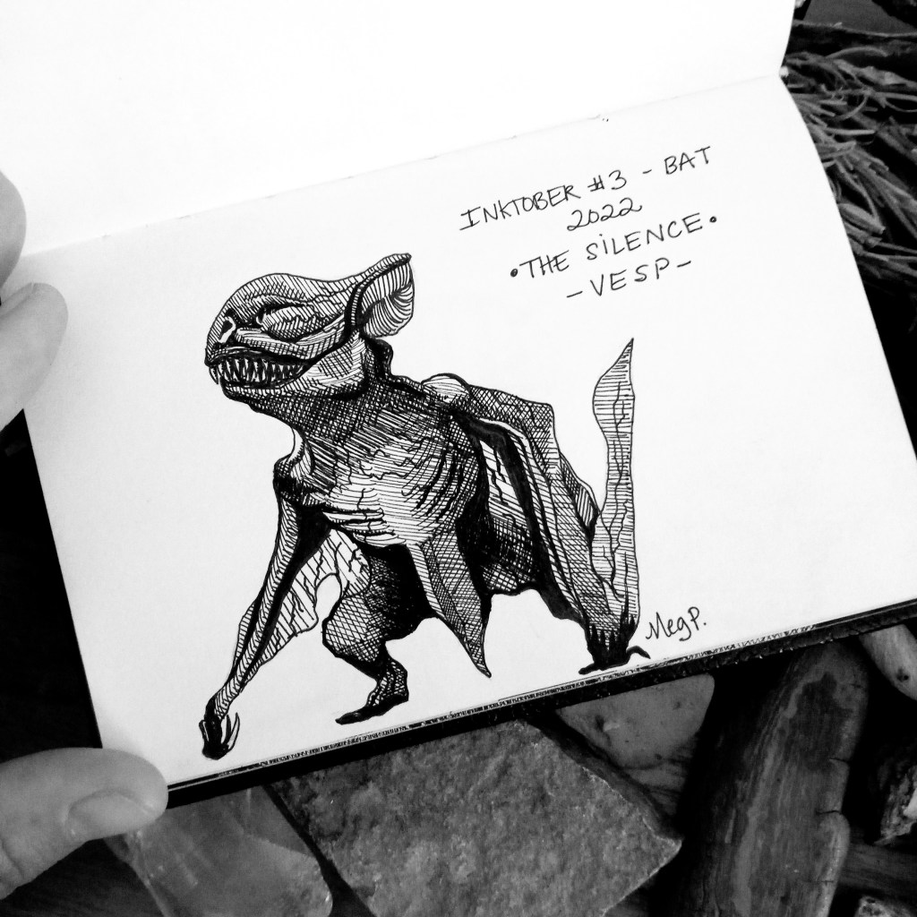 The third prompt for Inktober is bat. Again, this was another easy one considering bats are a popular go to when it comes to horror. I wanted to do something a little different than your typical bat though. I decided to draw a “Vesp” from the movie, The Silence.