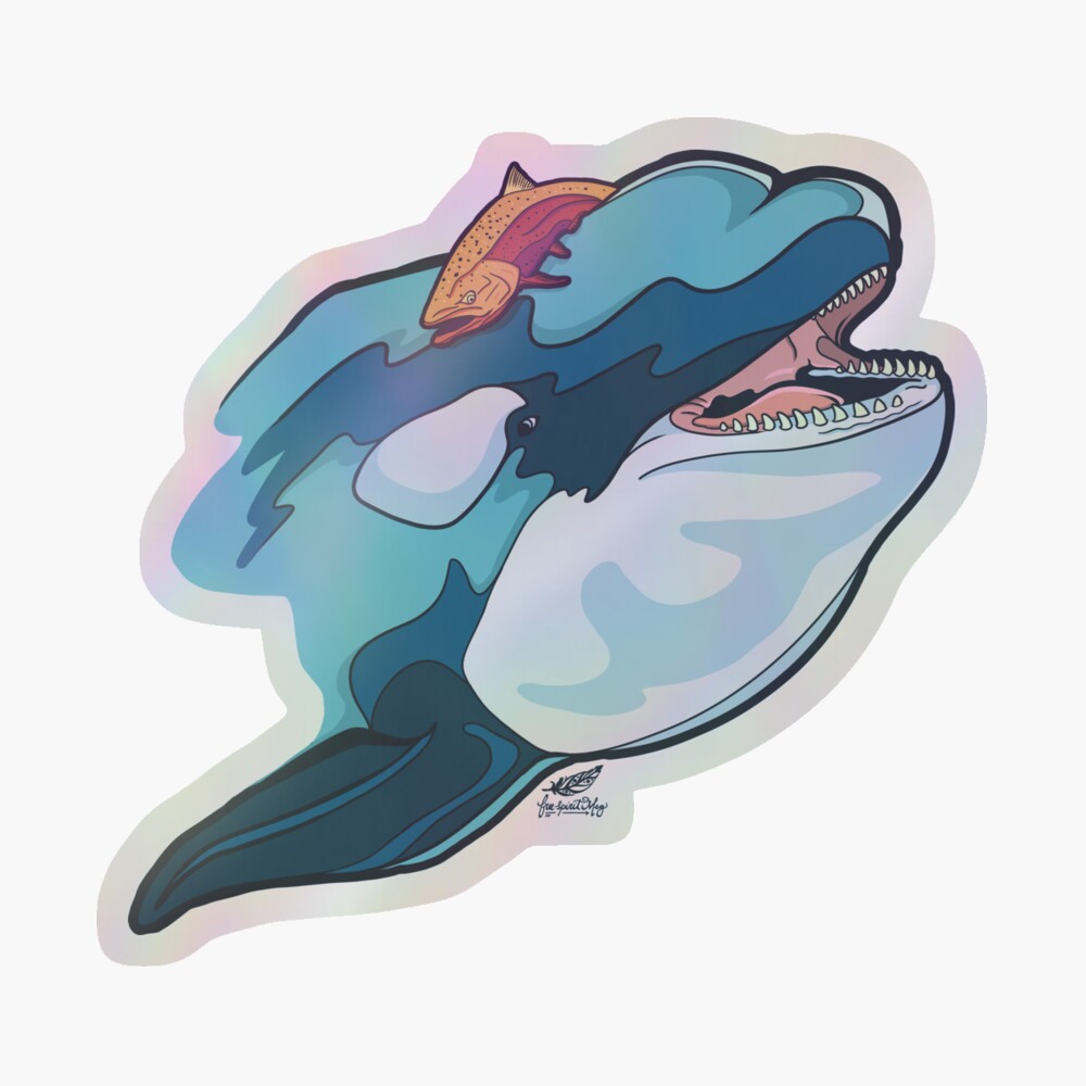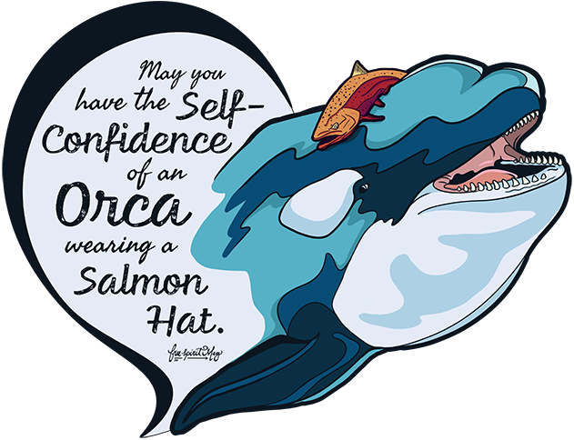 When I first came across this story, I literally stopped everything I was doing and started drawing the image in my head. I mean, an orca joyfully wearing a salmon as a hat. It brought a smile to my face and I hope you could get a chuckle out of it as well.