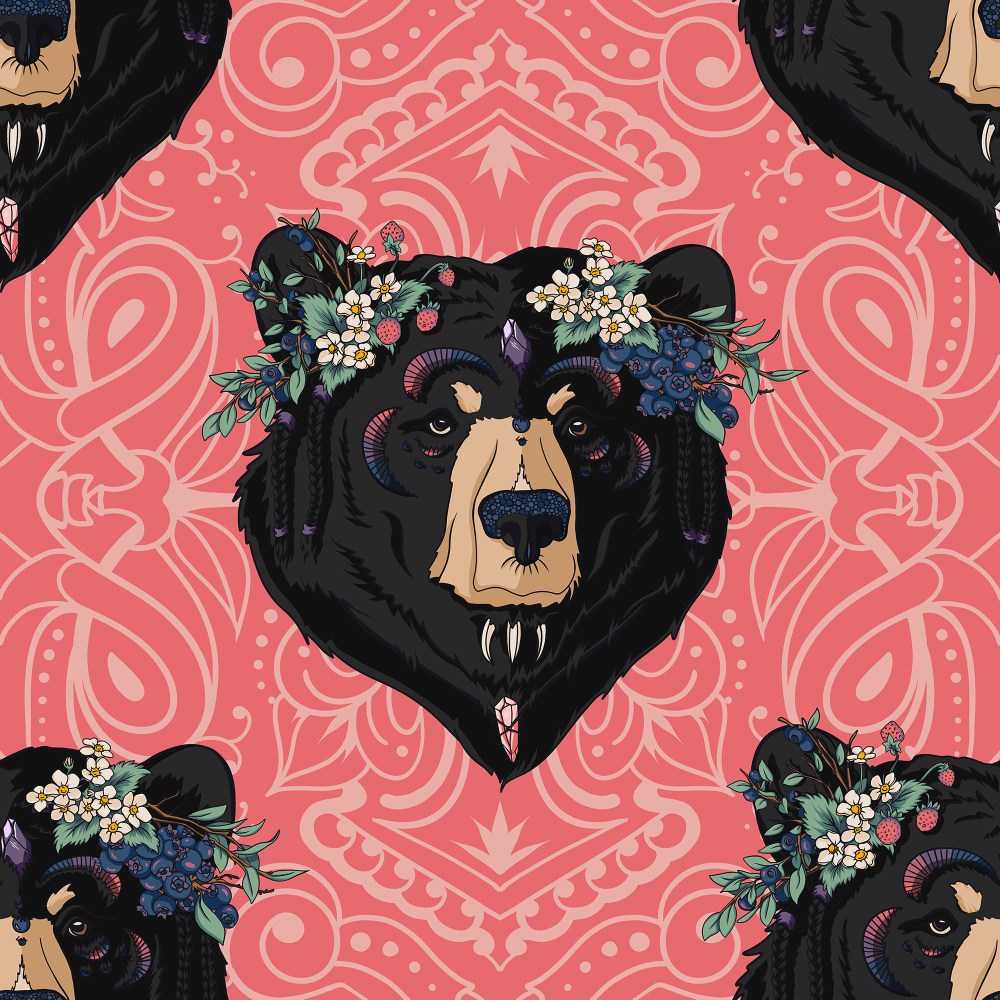 Black Bear Damask – Pink